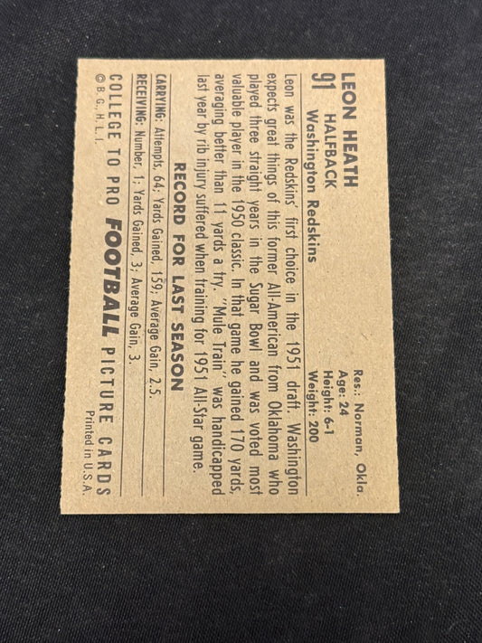 1952 BOWMAN LARGE FB LEON HEATH #91 NRMT V7349