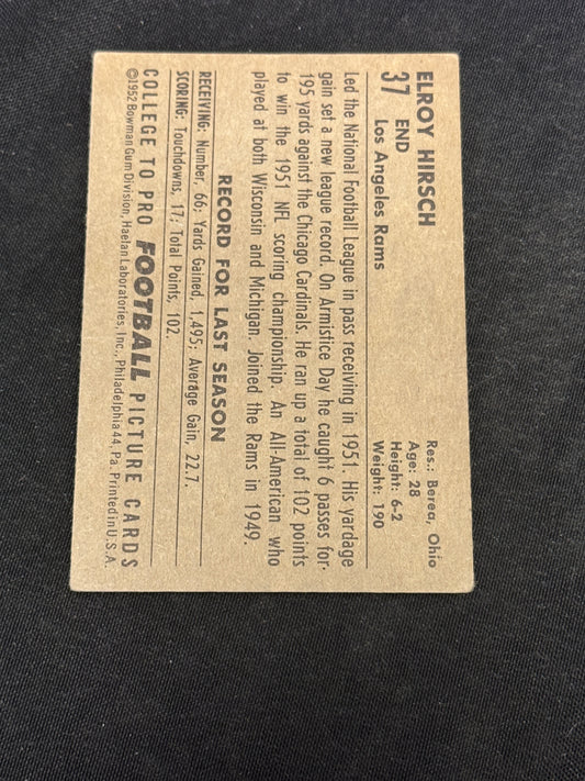 1952 BOWMAN LARGE FB ELROY HIRSCH #37 EX V7242
