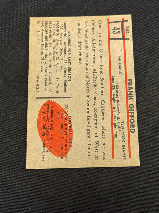 1953 BOWMAN FB FRANK GIFFORD #43 EXMT+ V15017