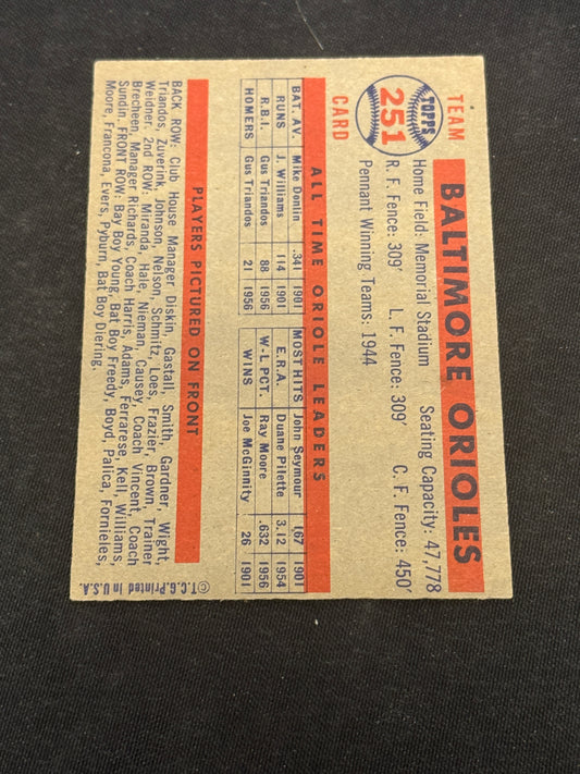 1957 TOPPS ORIOLES TEAM #251 EXMT+ V14511