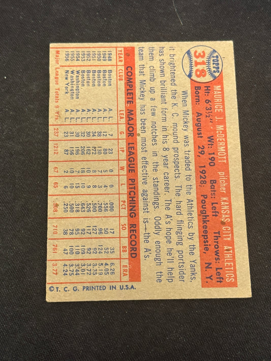 1957 TOPPS MICKEY McDERMOTT #318 EX+ V12933