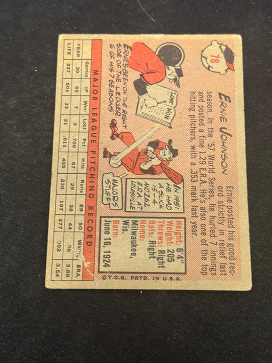 1958 TOPPS YELLOW LETTER ERNIE JOHNSON #78 VG V14237