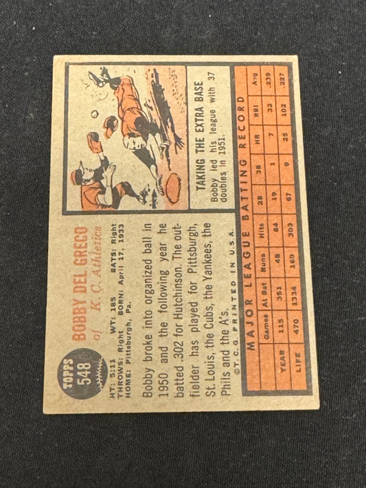 1962 TOPPS BOBBY DEL GRECO #548 EX+ V14632