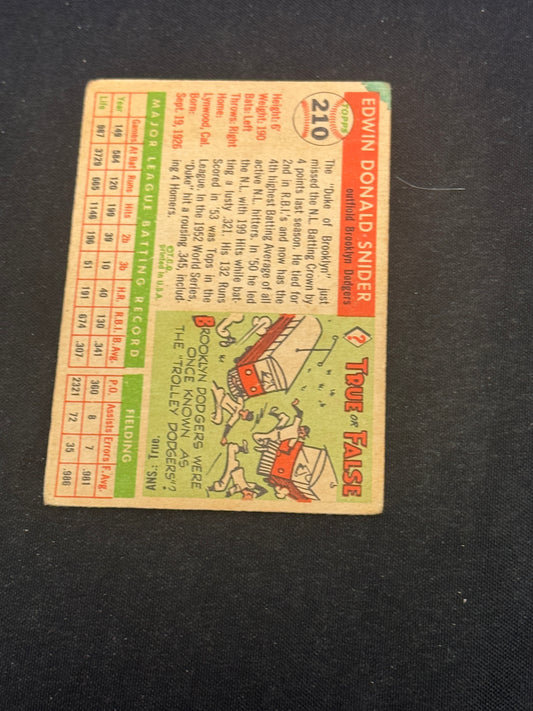 1955 TOPPS DUKE SNDIER #210 VG V14993