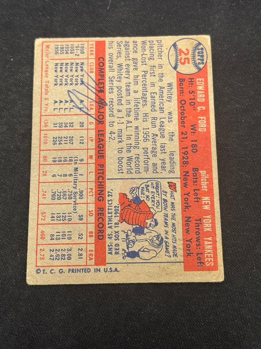 1957 TOPPS WHITEY FORD (MK ON BACK) #25 VGEX+ V14754