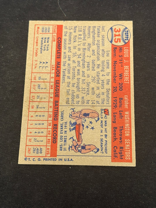 1957 TOPPS LOU BERBERET #315 NRMT V14638