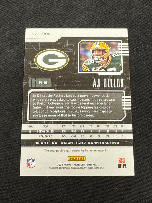 2020 PLAYBOOK FB AJ DILLON #125 29/49 AUTO RC7