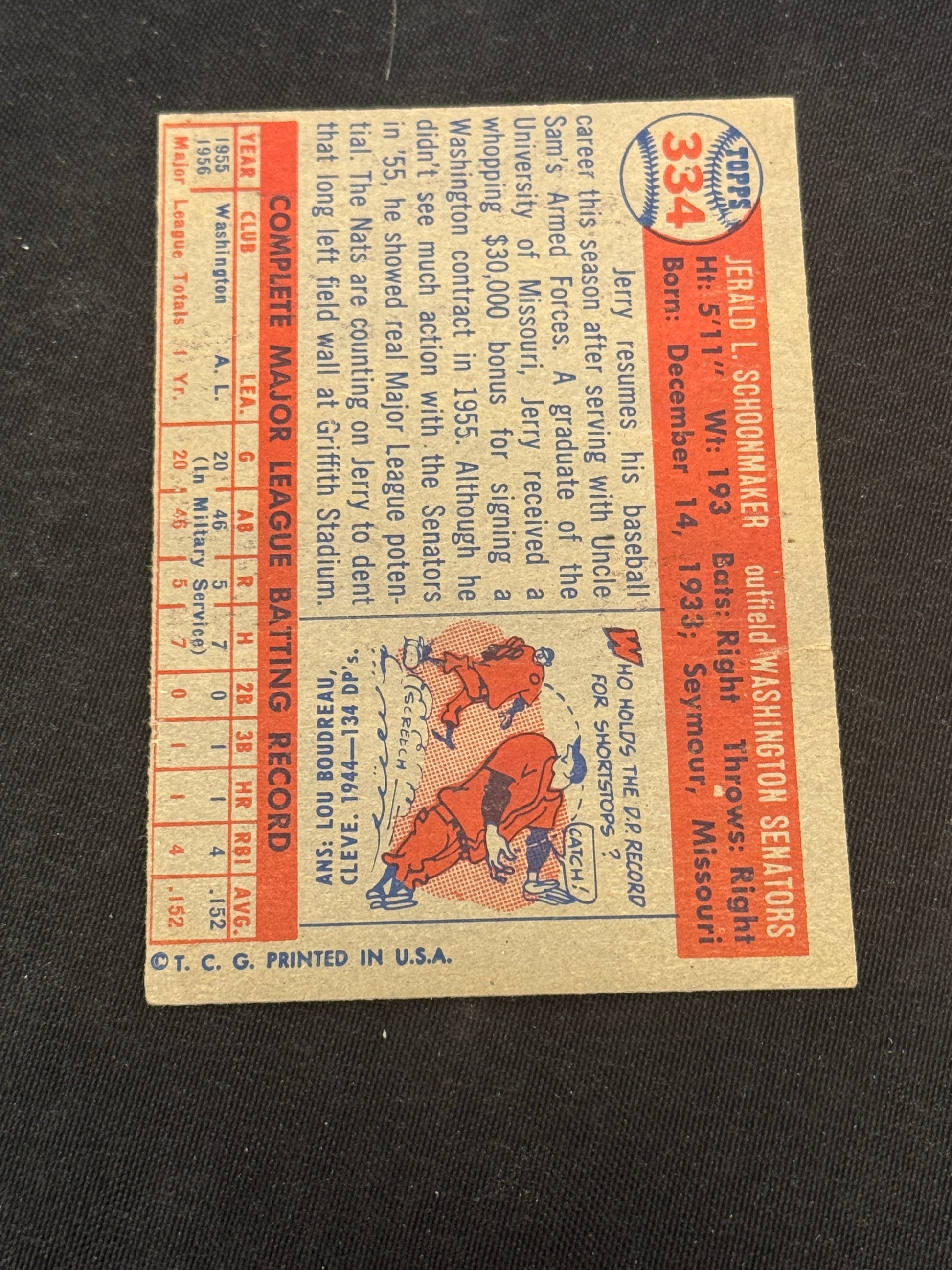 1957 TOPPS JERRY SCHOONMAKER #334 VGEX V15138