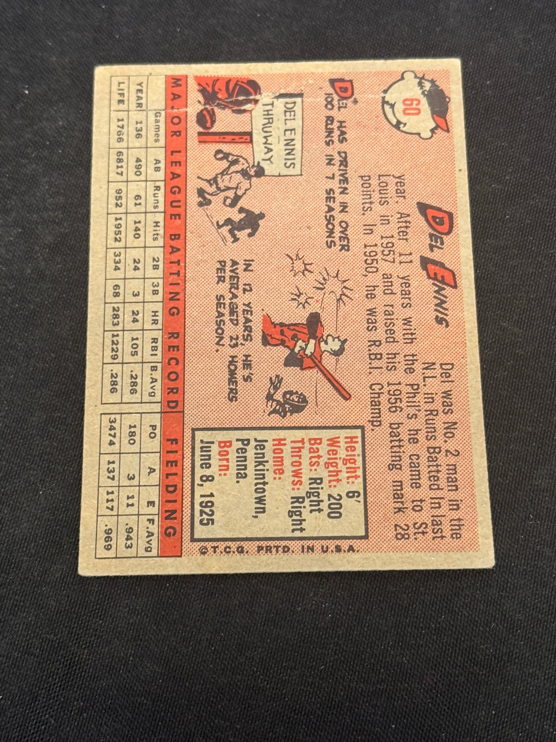1958 TOPPS YELLOW DEL ENNIS #60 VG V15072