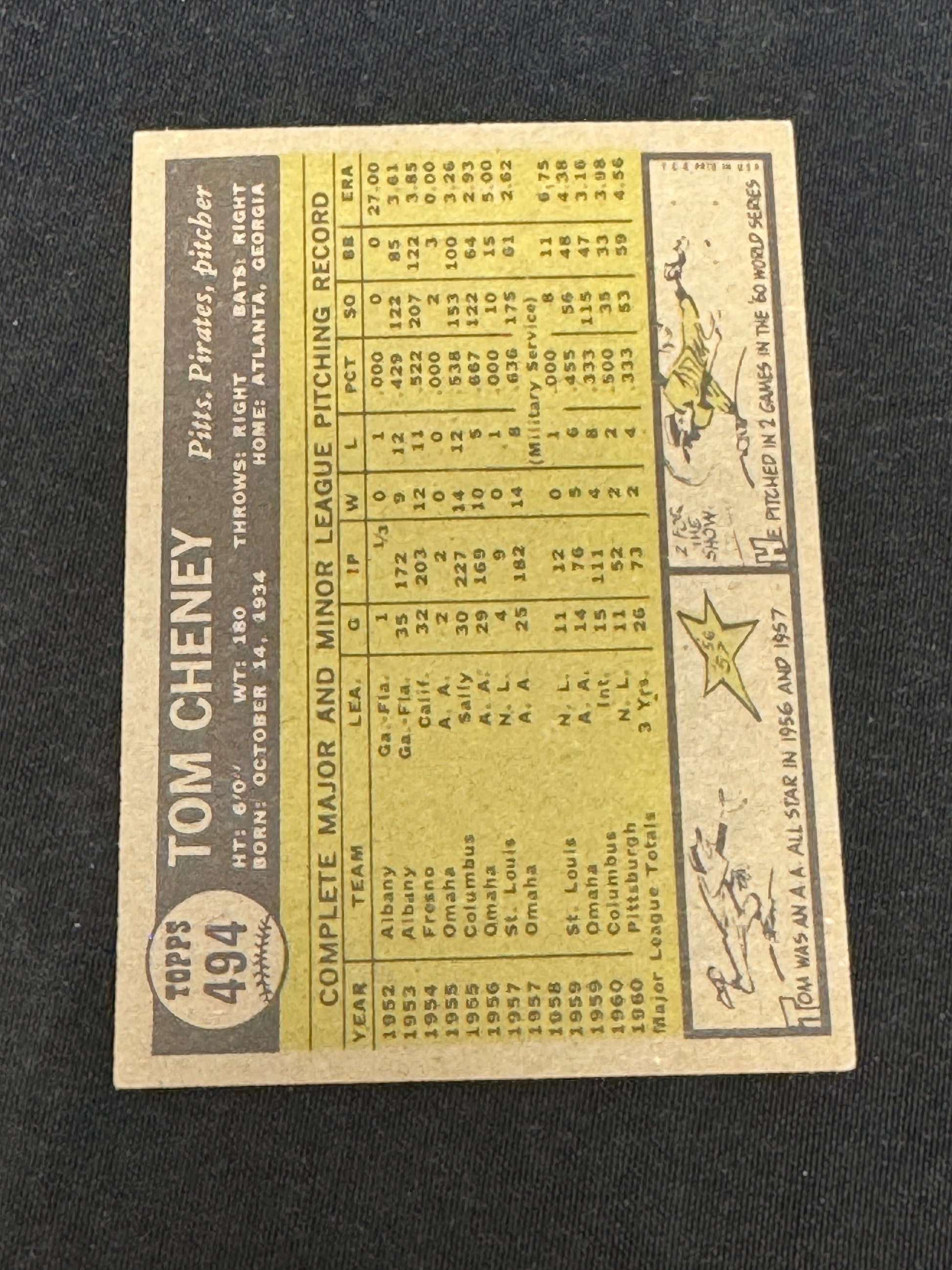 1961 TOPPS TOM CHENEY #494 EXMT V14663