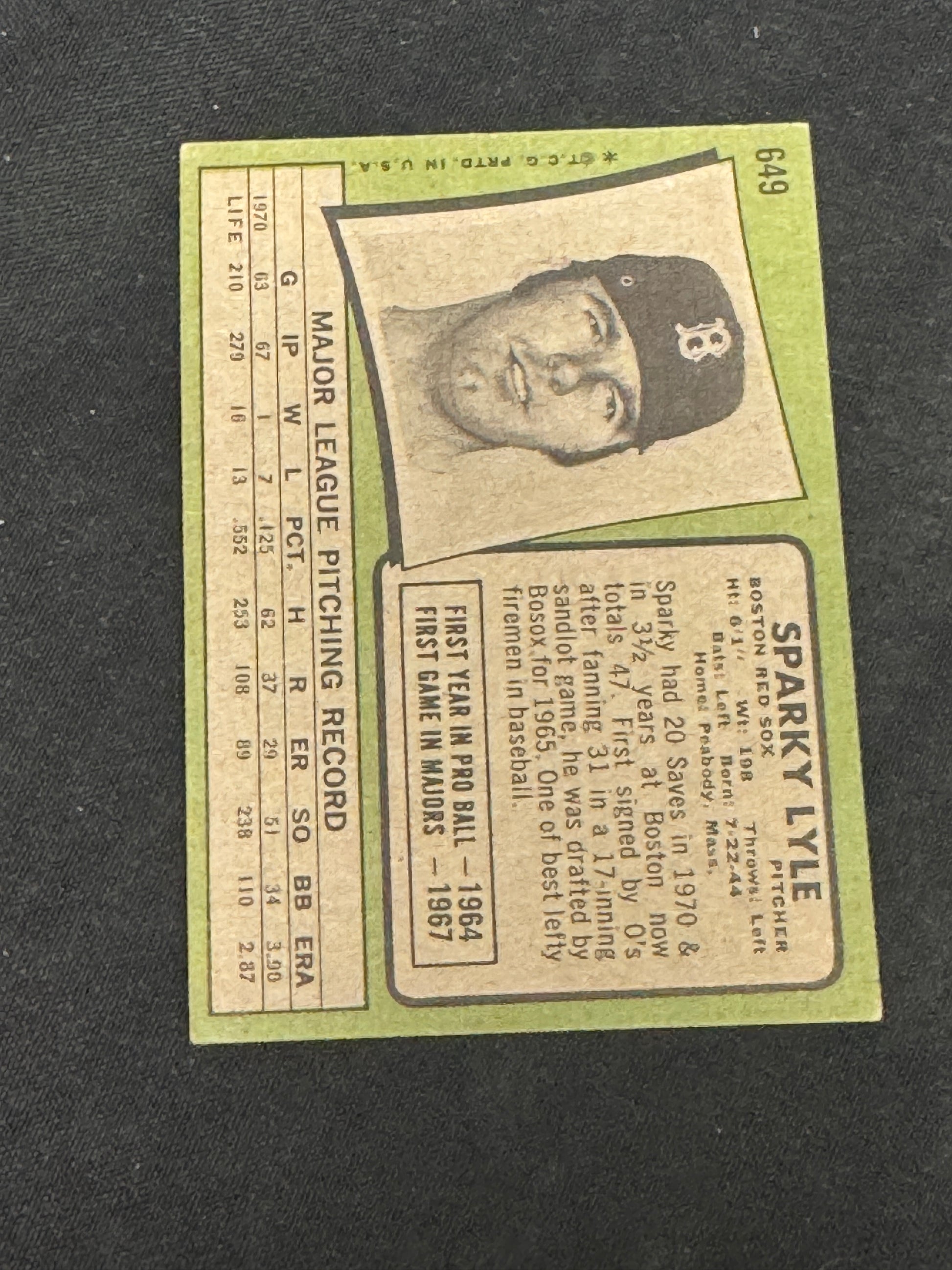 1971 TOPPS SPARKY LYLE #649 EXMT V15120