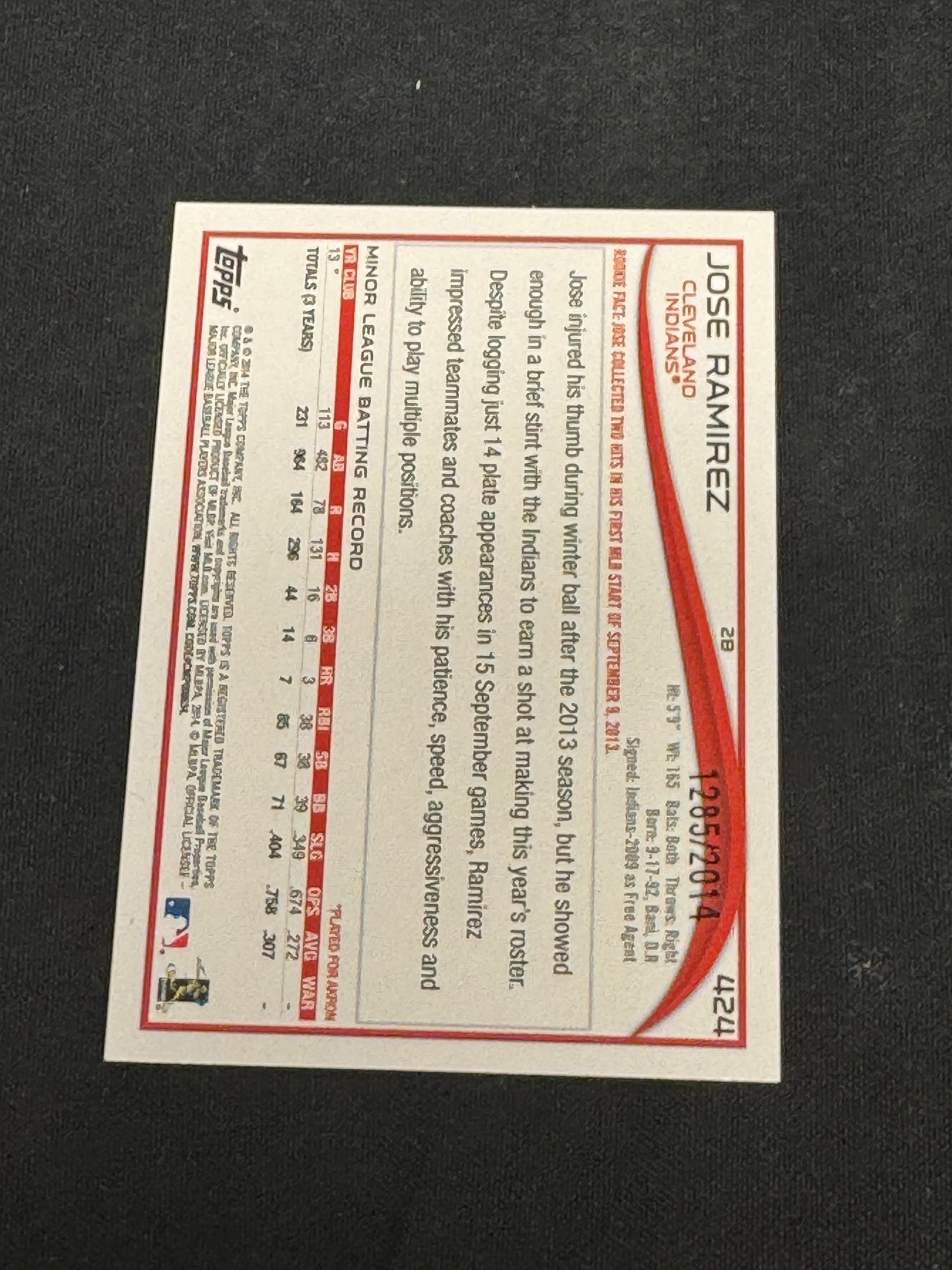 2014 TOPPS GOLD JOSE RAMIREZ RC #424 NM-MT 1285/2014 V15311