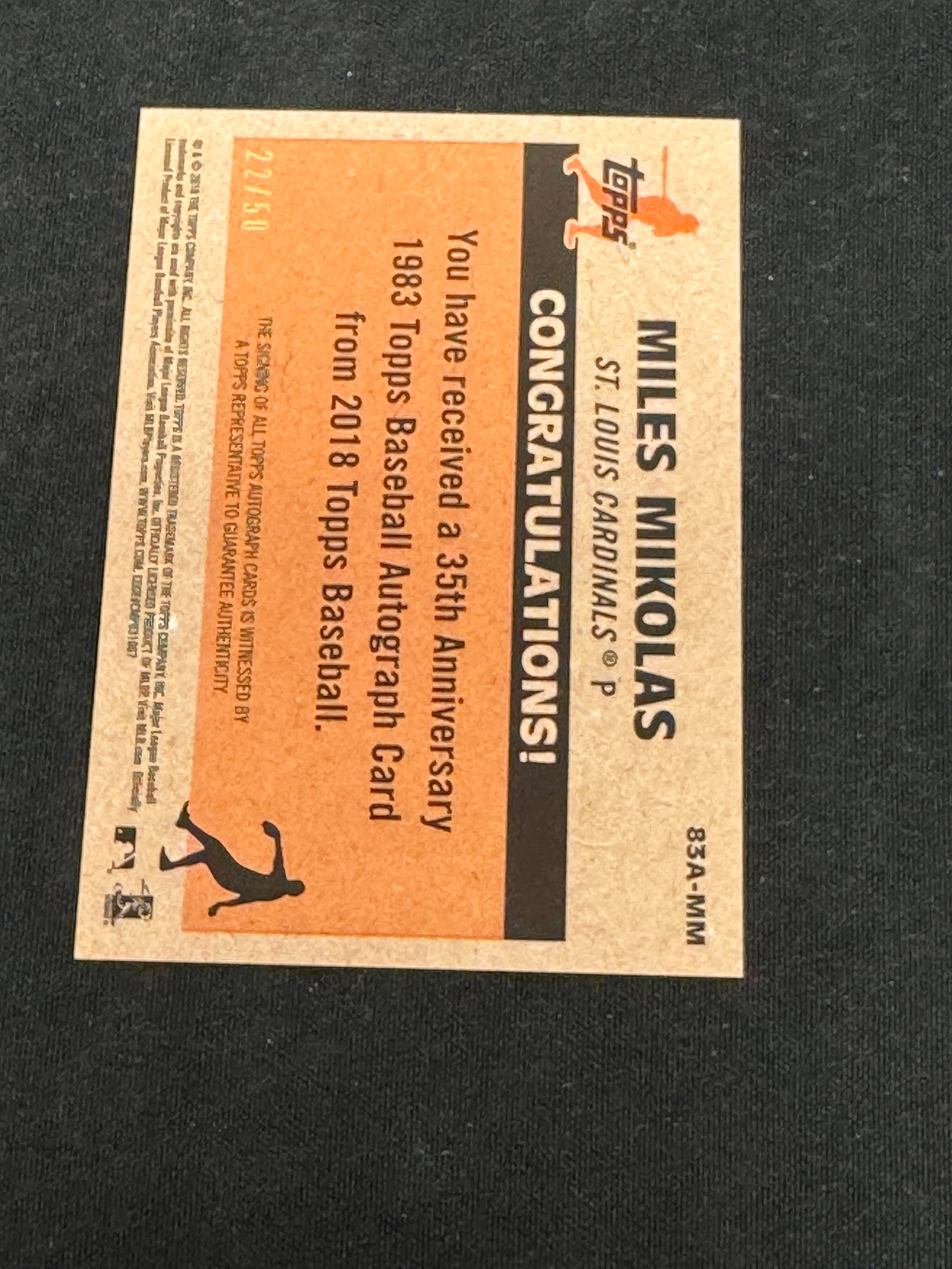 2018 TOPPS CERTIFIED MILES MIKOLAS 83A-MM 22/50 AUTO RC45